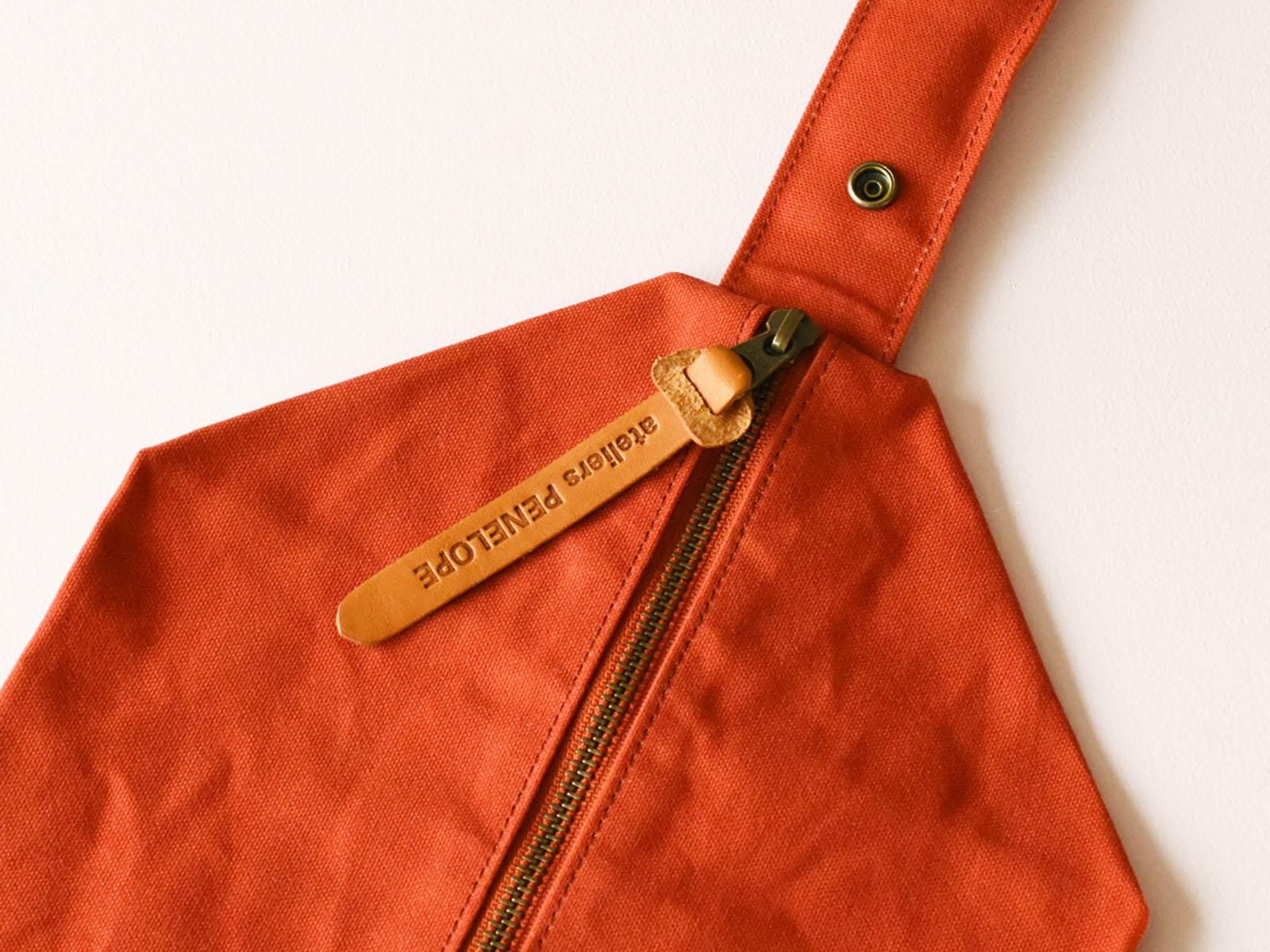 帆布は糸を撚り合わせ平織りに高密度に織り上げるため写真のような織り段や小さな糸節が見られる場合がございます。これらは天然素材の特徴となりますので、不良品対象ではありません。あらかじめご理解をいただいた上でご使用下さい。