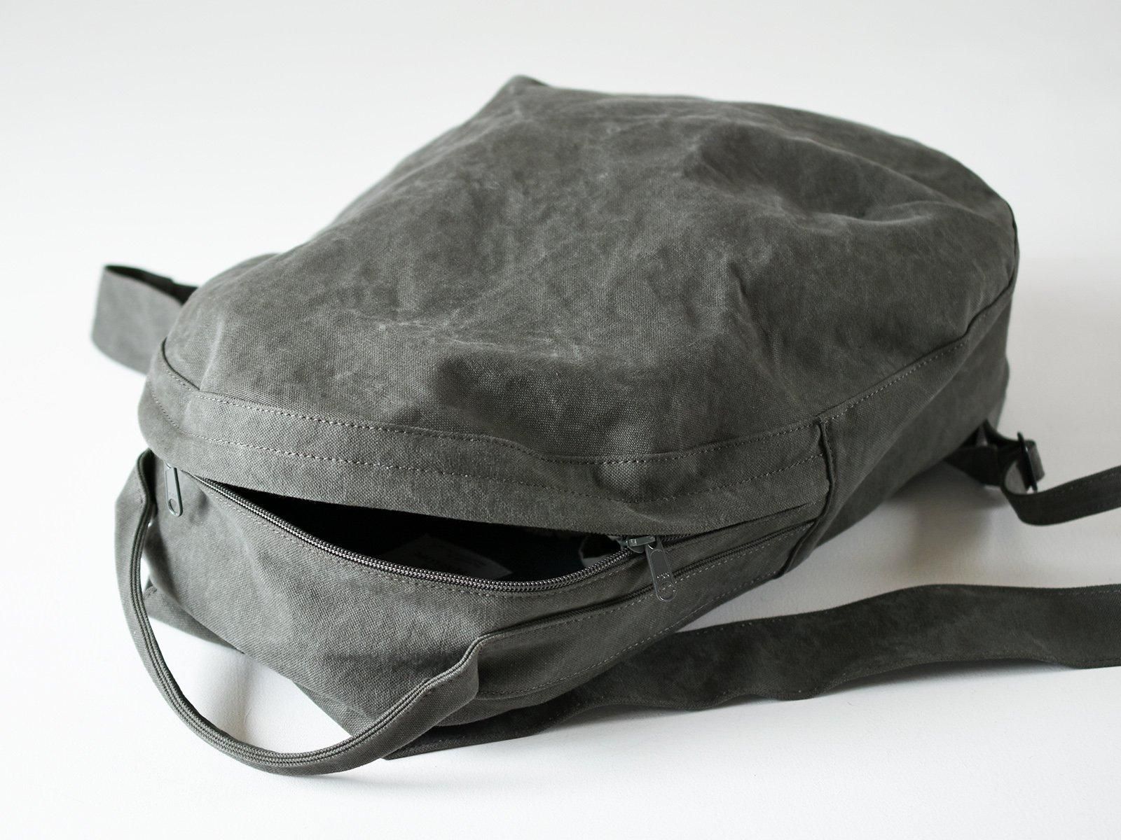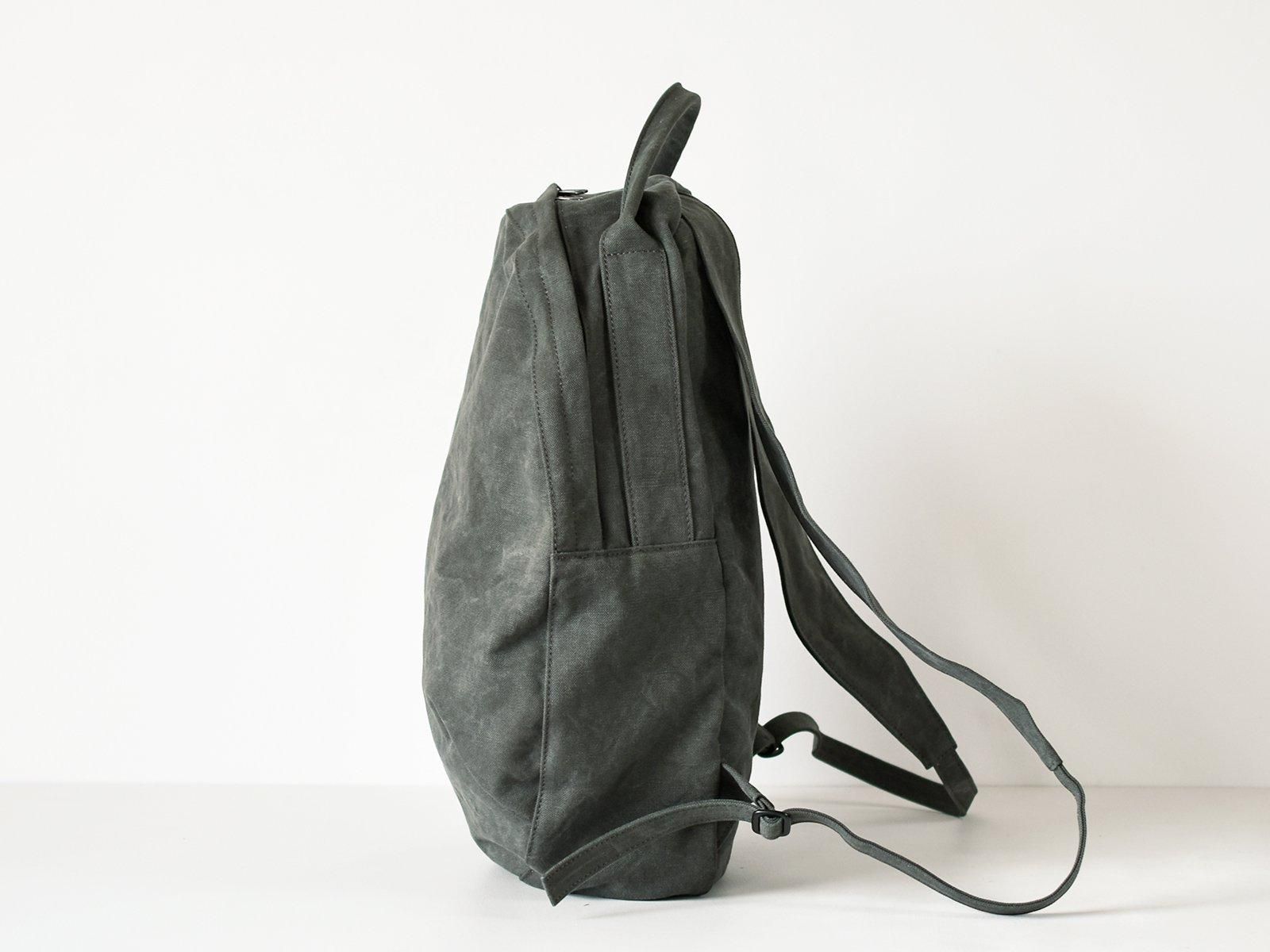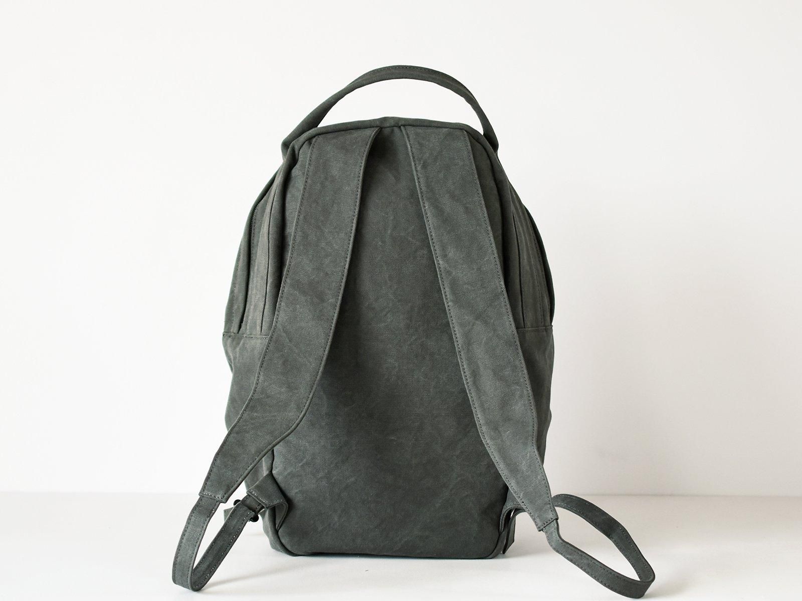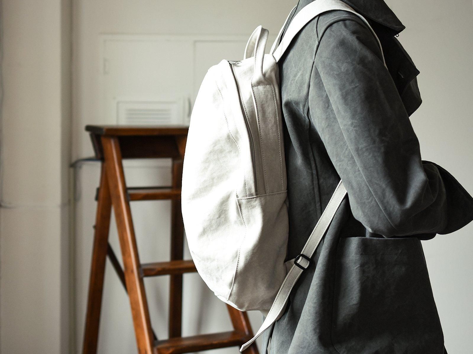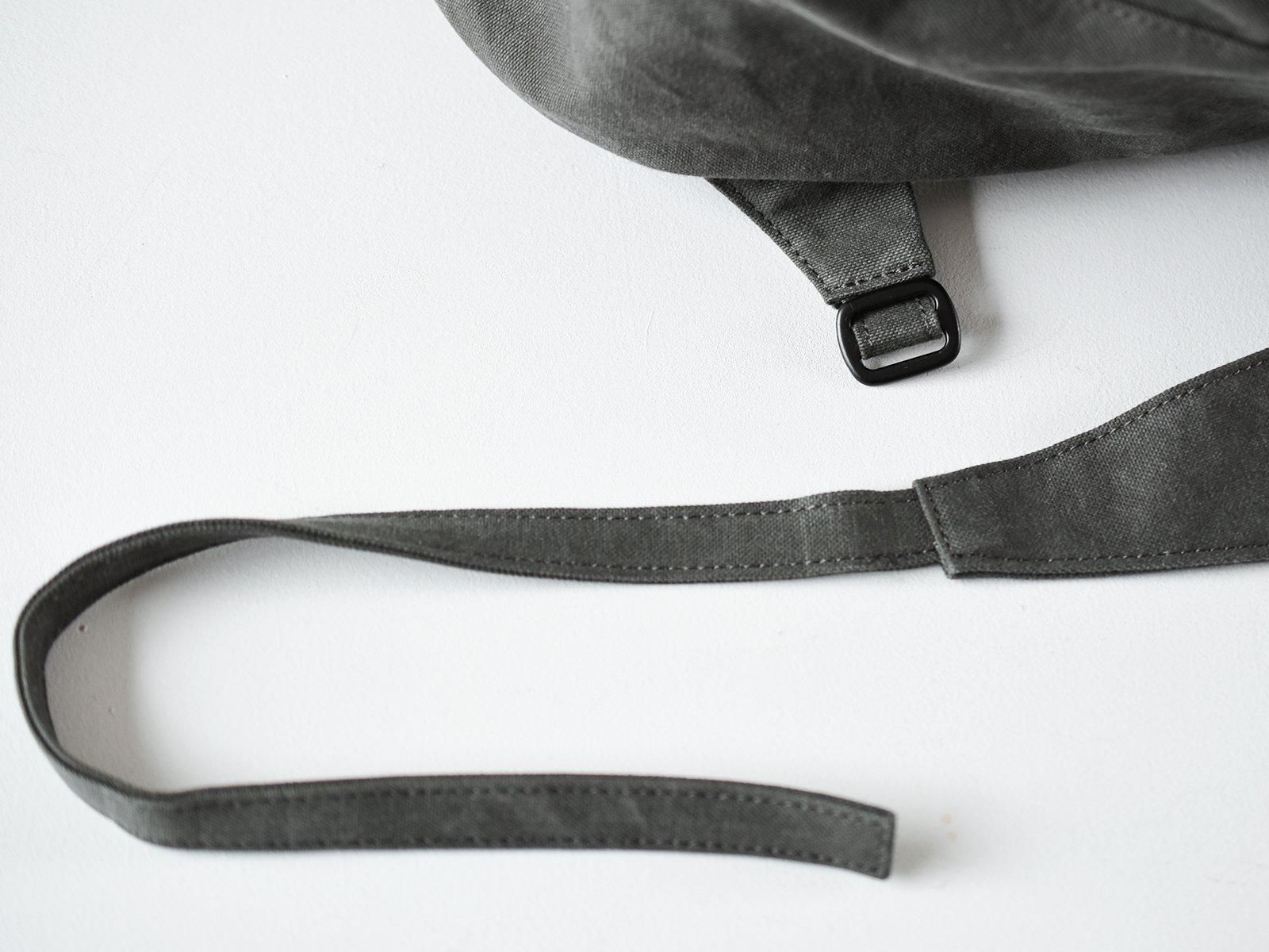 1920年代フランス陸軍のライダーコートの生地から着想を得て生まれた、オリジナルフレンチミリタリーコットン素材を使用したデイパックです。丸みを帯びた繭玉のように見えることからコクーンと名付けました。無駄を削ぎ落としたシンプルなデザインの中にステッチやタックでディテールを加え、素材の風合いを活かした立体感あるフォルムに仕上げました。