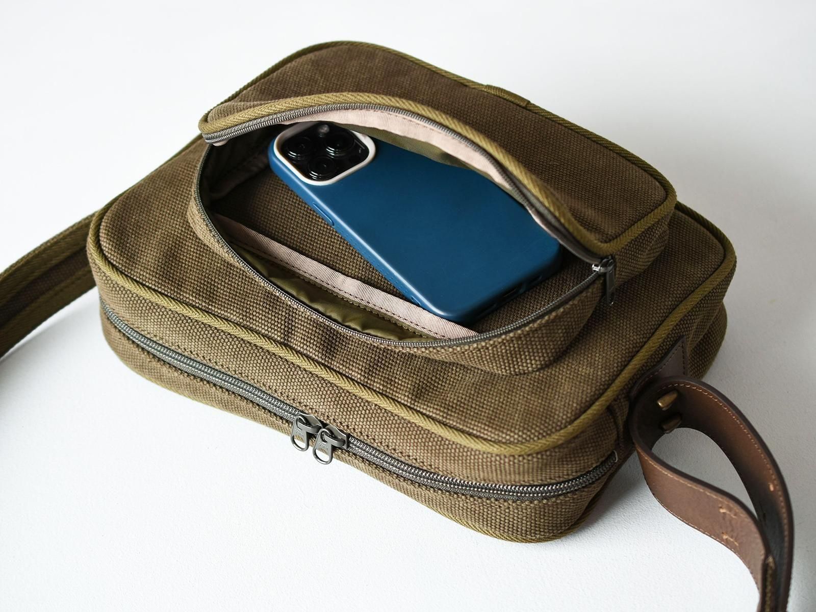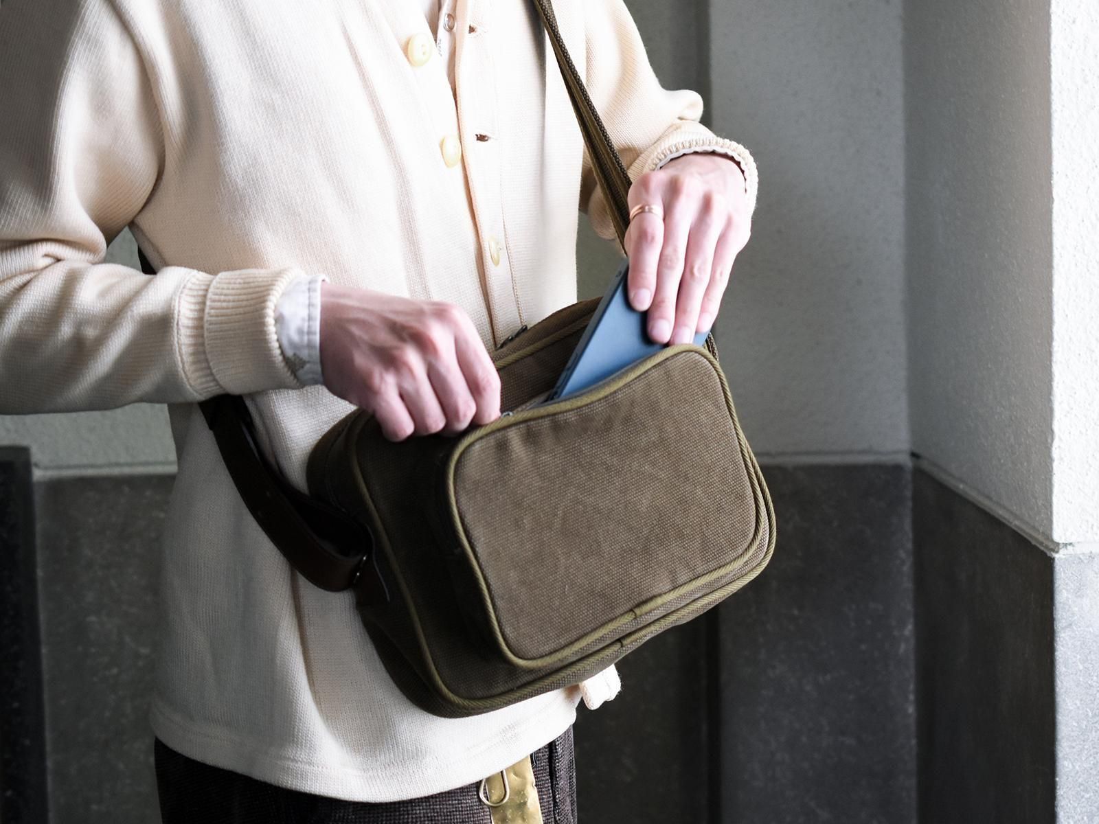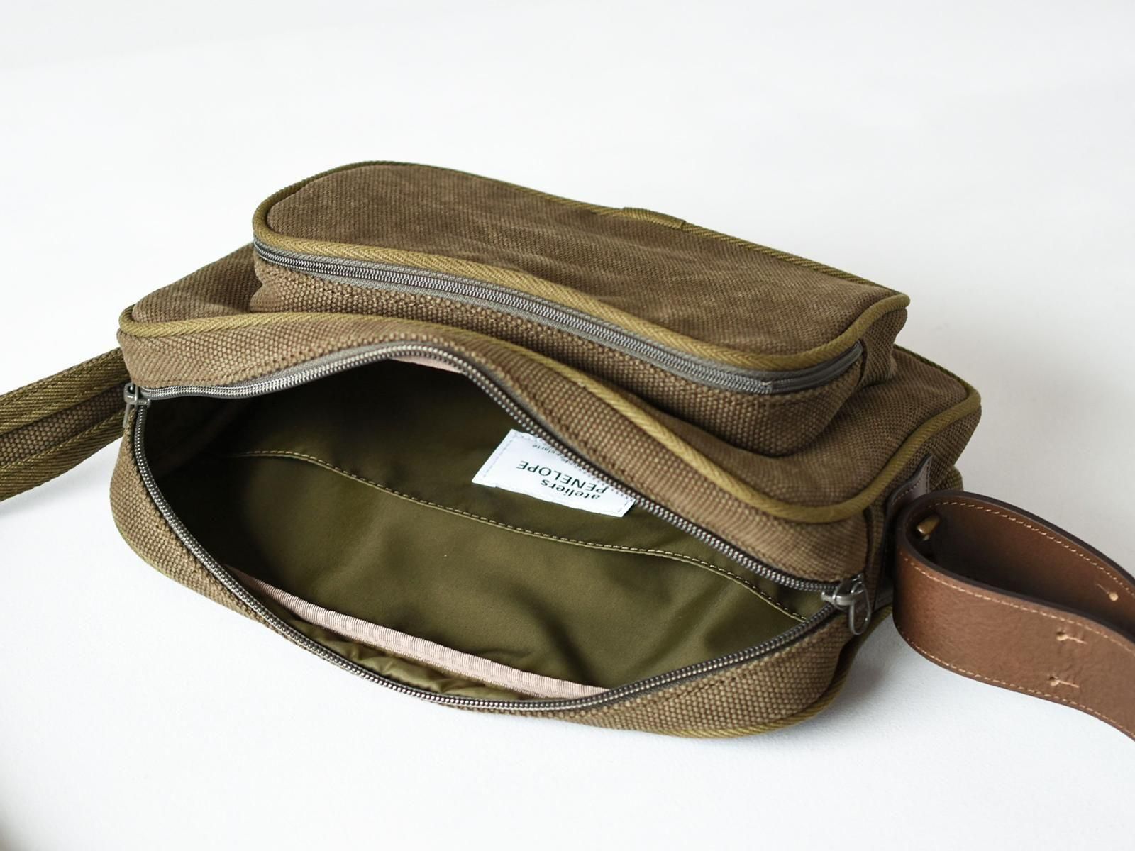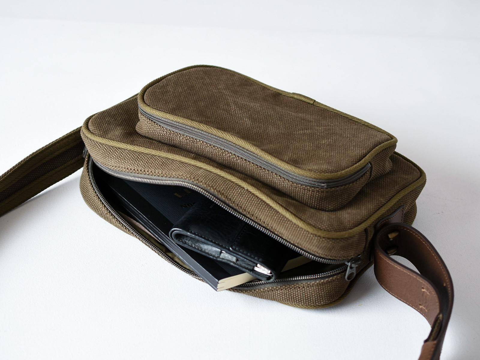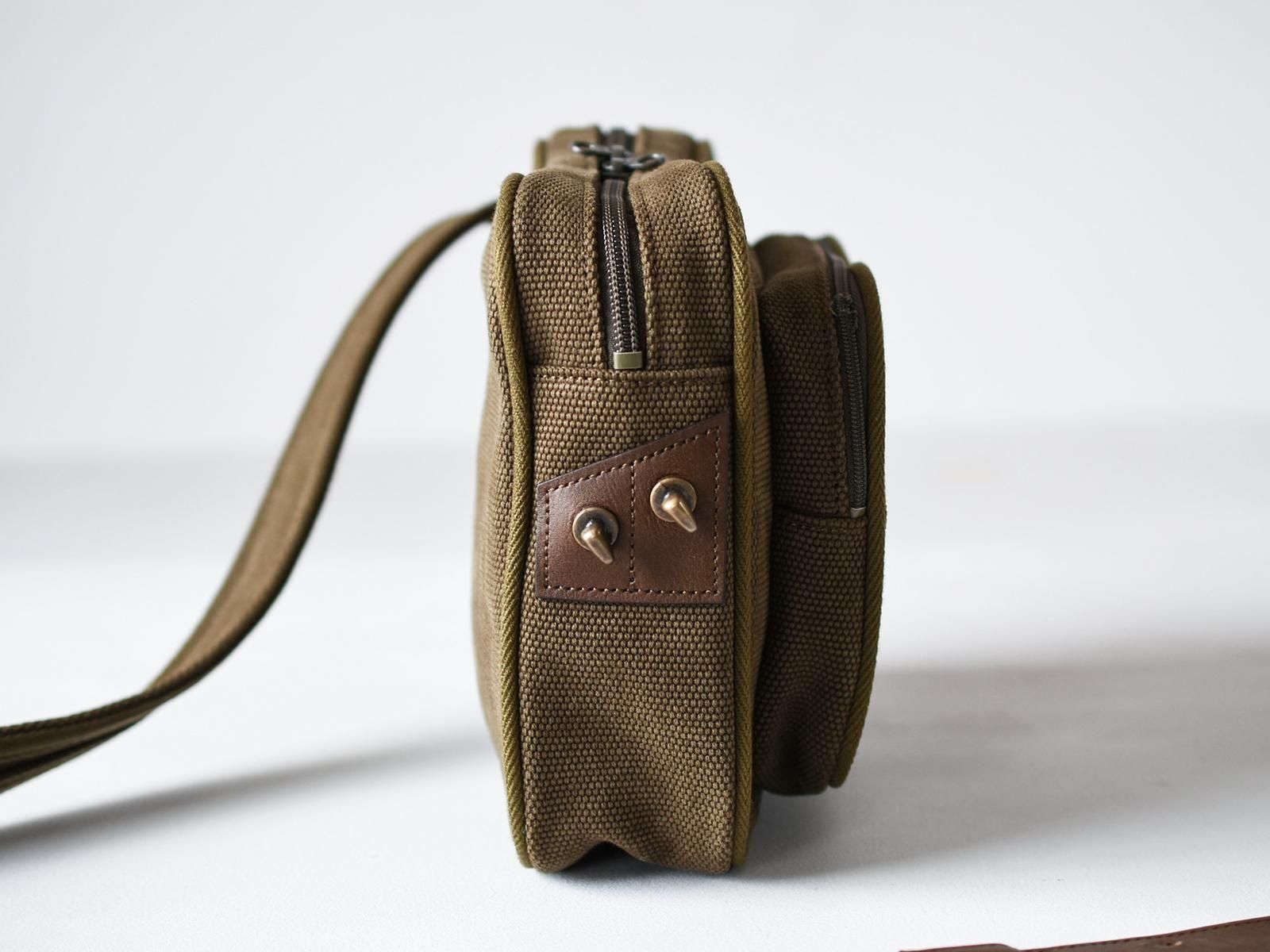 オリーブ/裏地ナイロン:カーキ、ショルダー革:ブラウン