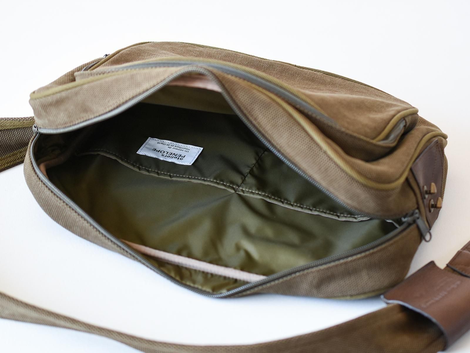 オリーブ/裏地ナイロン:カーキ、ショルダー革:ブラウン